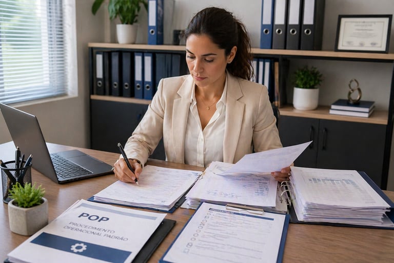 Elaboração de POPs, manuais, registros e dossiês organizados e prontos para auditorias.